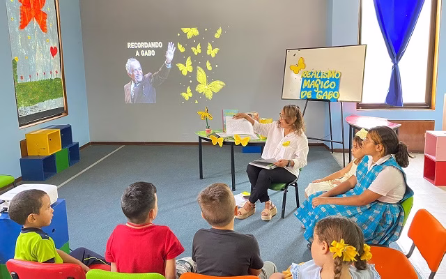Exploratorio “Obras literarias cantadas, contadas e ilustradas, Gabriel García Márquez” Un proyecto del Museo del Oro Tairona que reúne a niños, niñas y sus familias alrededor de las humanidades y patrimonios culturales. Tallerista Claudia Andrade.